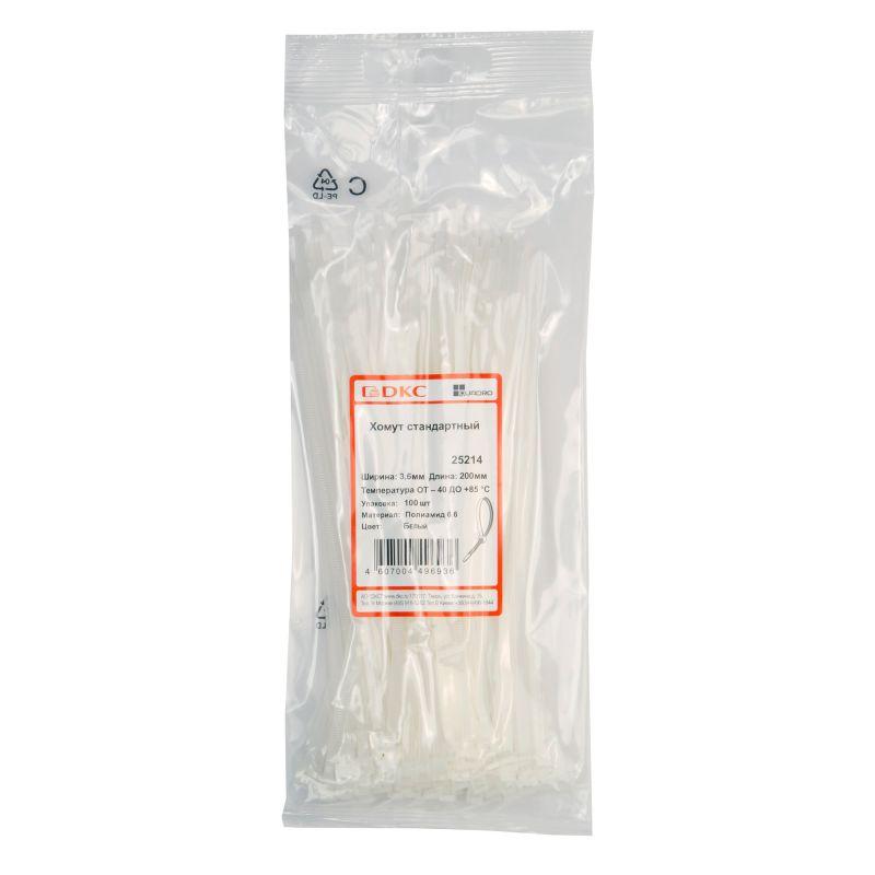 Хомуты (или, иначе, стяжки) – это популярный крепежный элемент, применяющийся при монтажных или строительных работах. Хомуты ДКС прочны, устойчивы к коррозии и воздействию агрессивных сред, что позволяет использовать их не только внутри помещений, но и на улице. С помощью гибких хомутов можно создавать как жесткие, так и подвижные соединения. Ребристые внутренняя и внешняя стороны обеспечивают надежную фиксацию и предотвращает соскальзывание хомута. Изделие имеет длину 200 мм, ширину 3,6 мм, устойчивость к растяжению 180 H. Не рекомендуется использовать стяжки в зонах, где они будут подвергаться воздействию прямых солнечных лучей. Температура монтажа составляет от -30 °C до +60 °C, температура эксплуатации – от -45 °C до +85 °C. Материал – полиамид. Цвет – белый.