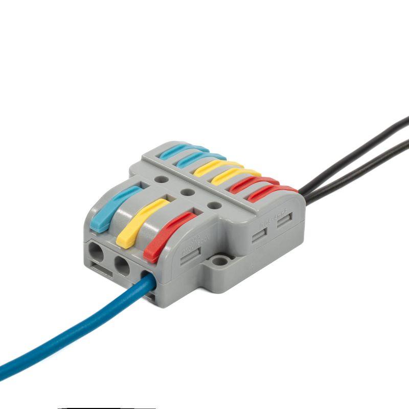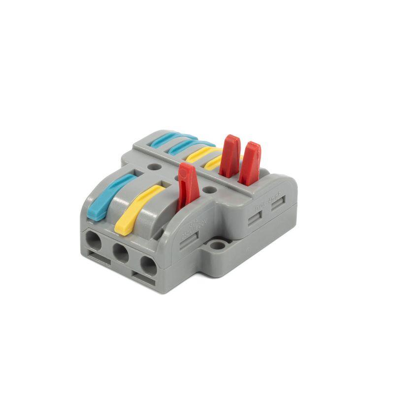 • Универсальные изолированные клеммы для ответвления любых типов медных проводников: моножильных и многожильных тонкопроволочных • Клеммы имеют монтажную площадку, позволяющую устанавливать клемму на плоскую поверхность или в монтажную коробку • Зажим проводов в клемме осуществляется при помощи рычагов • Наличие специального паза в корпусе клеммы для размещения рычага в закрытом положении надежно предотвращает случайное отсоединение проводника • Возможность измерения электрических параметров цепи без разбора и нарушения изоляции соединения • Безопасность и порядок в распределительной коробке • Максимальное напряжение: 450 В