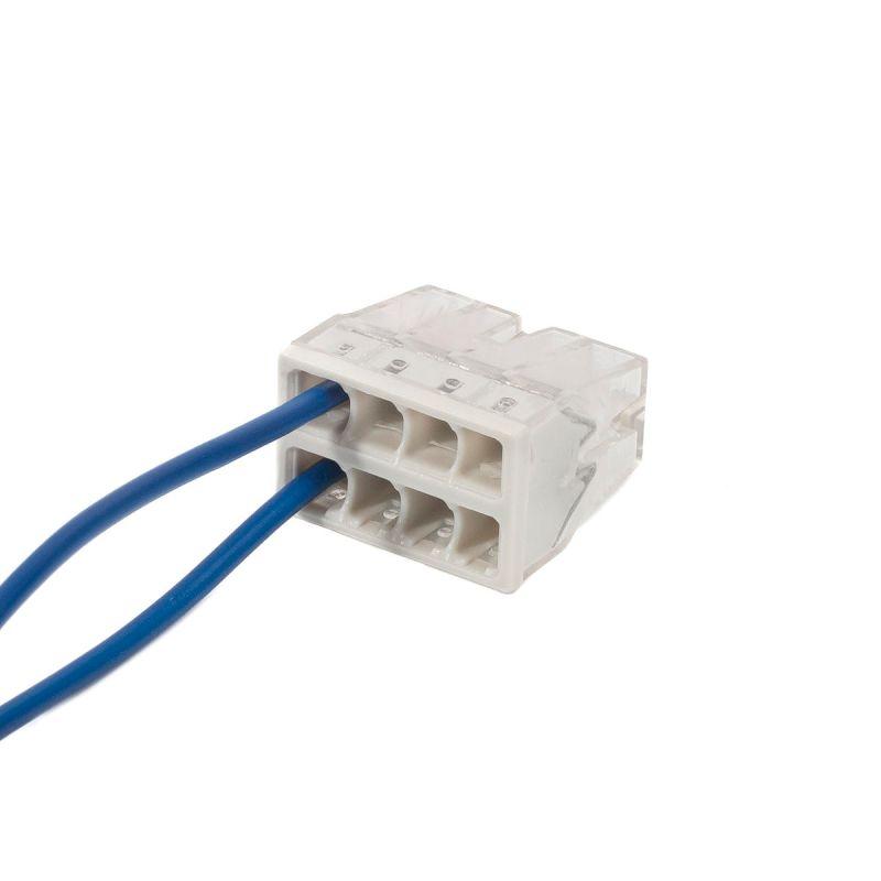 • Клеммы в прозрачном корпусе, без контактной пасты, предназначены для подключения одножильных медных проводников • Конструкция клемм предусматривает возможность монтажа медных проводников различного сечения(0.5 до 2.5) в одной клемме • Линейное расположение контактной группы экономит место в распределительной коробке, а также делает монтаж более удобным и быстрым • Каждый проводник имеет отдельное клеммное место и не повреждается в результате монтажа • Смотровые окна на корпусе клеммы дают возможность контролировать правильность зачистки проводников и защиту от касаний • Уникальная цветовая маркировка каждого типоразмера клемм позволяет быстро и правильно идентифицировать их при монтаже • Монтаж не требует использования инструментов • Прозрачный корпус позволяет контролировать глубину захода жилы • Надежная защита от случайного прикосновения к токоведущим частям соединения • Гарантированная надежность контактов, исключающая короткое замыкание и разогрев в точке соединения • Максимальное напряжение: 450 В