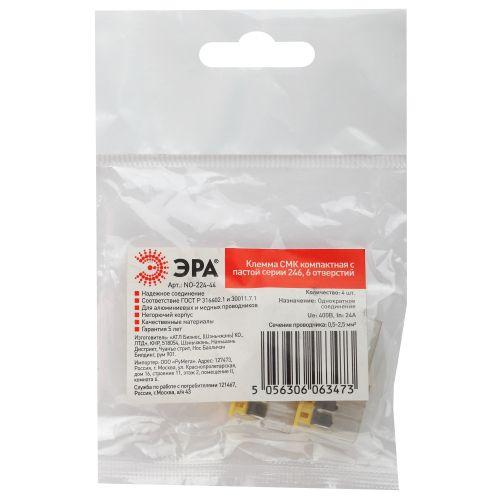 Клемма строительно-монтажная СМК компактная 246 NO-224-44 6-проводная 0.5-2.5кв.мм с пастой (уп.4шт) Эра Б0043962
