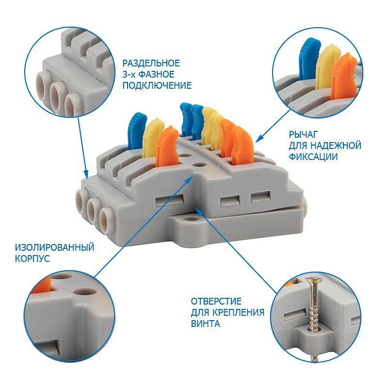 Многоразовые соединительные клеммы REXANT предназначены для соединения медных одножильных и многожильных зачищенных проводников тонкого сечения.