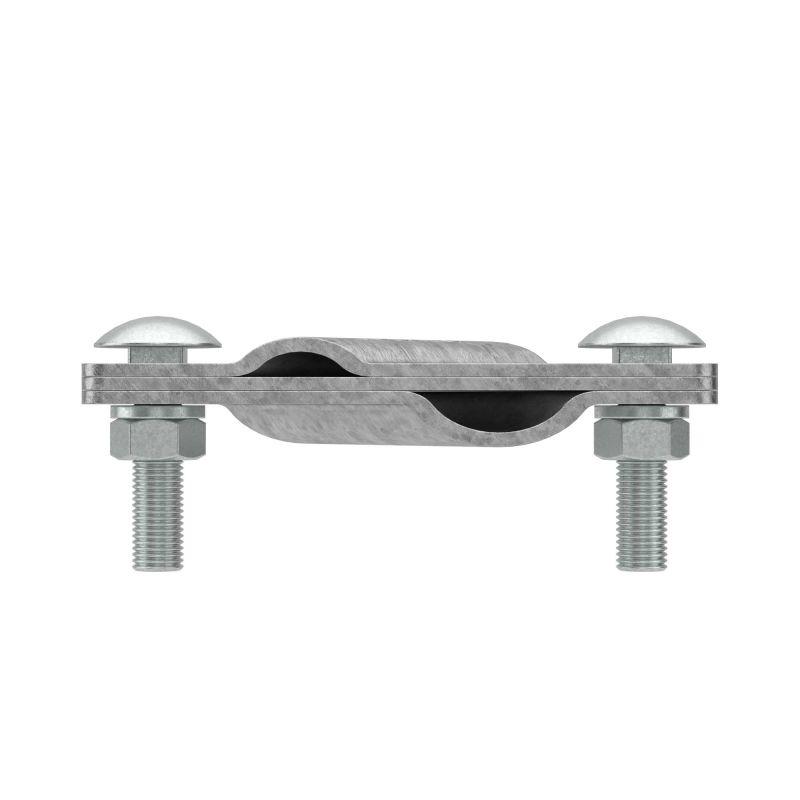 Соединитель вертикального заземлителя применяется для подключения стержневого заземлителя диаметром 16 или 20 мм к полосе 25-50 мм или к прутку 8-10 мм. Проводник подключается к заземлителю посредством болтового соединения. Материал - горячеоцинкованная сталь.
