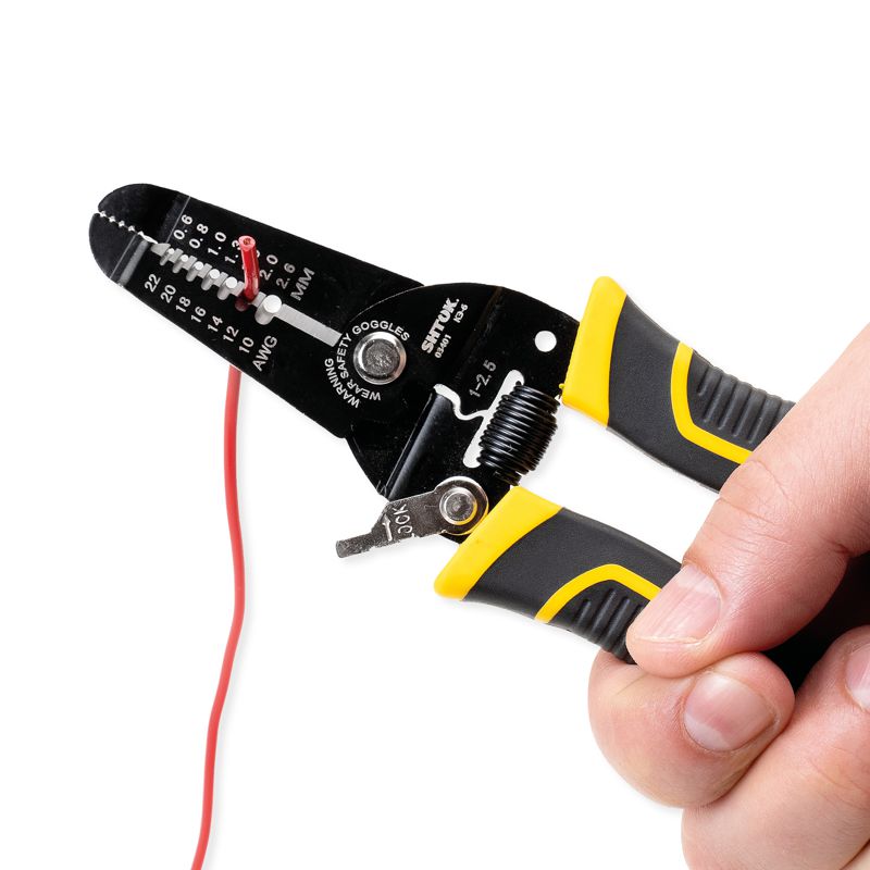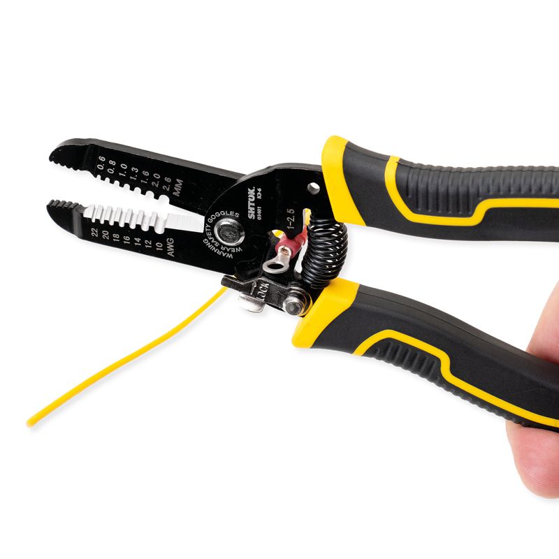 Электромонтажные клещи SHTOK КЭ-6 03401 служат для снятия изоляции с проводов без повреждения жилы, а также для их отрезания. Инструмент обладает губками и высокопрочной стали, стойкой к нагрузкам. Возвратная пружина снижает усилие во время резки кабеля. Благодаря фиксатору ручек, клещи можно компактно и безопасно хранить.
