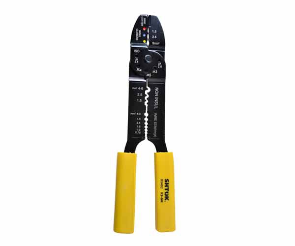 Электромонтажные многофункциональные клещи 5в1 SHTOK КЭ-6М 03402 служат для резки проводов до 6 мм2, снятия изоляции - 0,75 - 6 мм2, опрессовки изолированных и неизолированных наконечников - 1.5, 2.5, 6 мм2, резки винтов - М2.5, МЗ, М3.5, М4, М5. Ручки инструмента изготовлены из экологичного ПВС. Прочная рабочая часть из стойкой к нагрузкам стали обеспечивает долговечность и надежность применения.