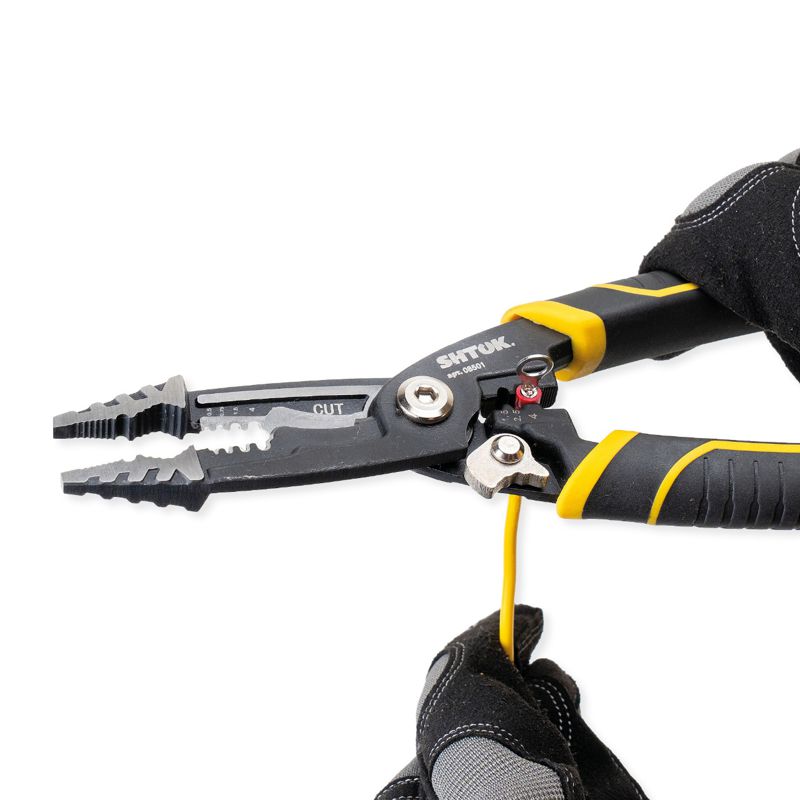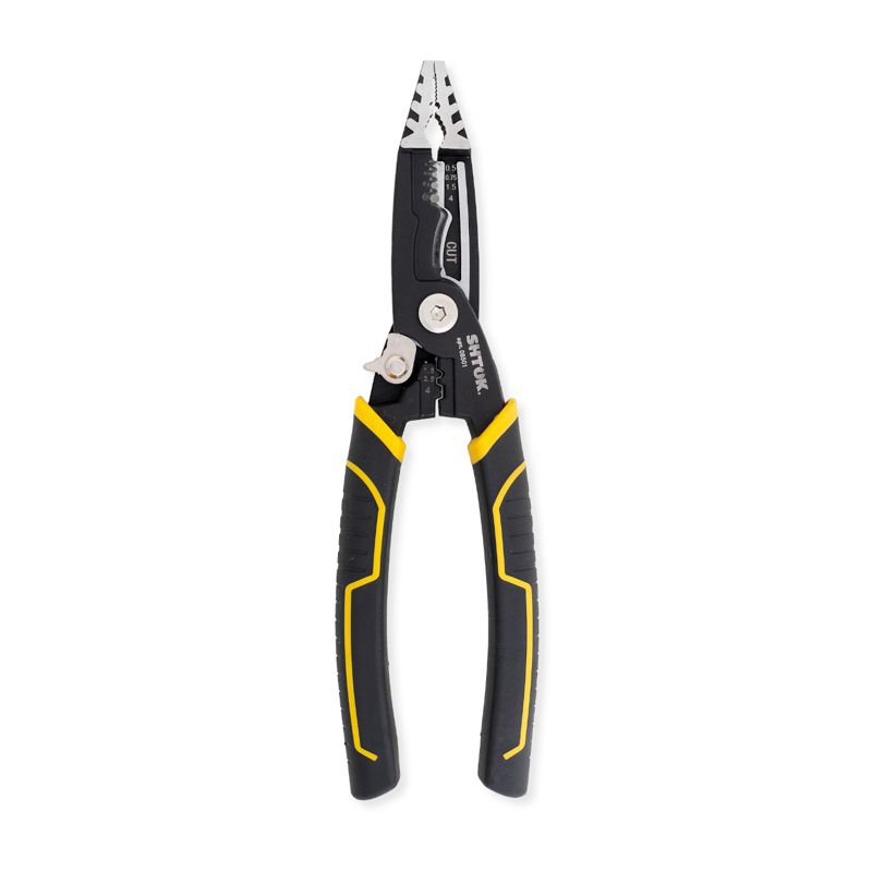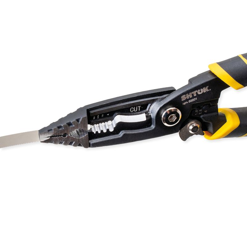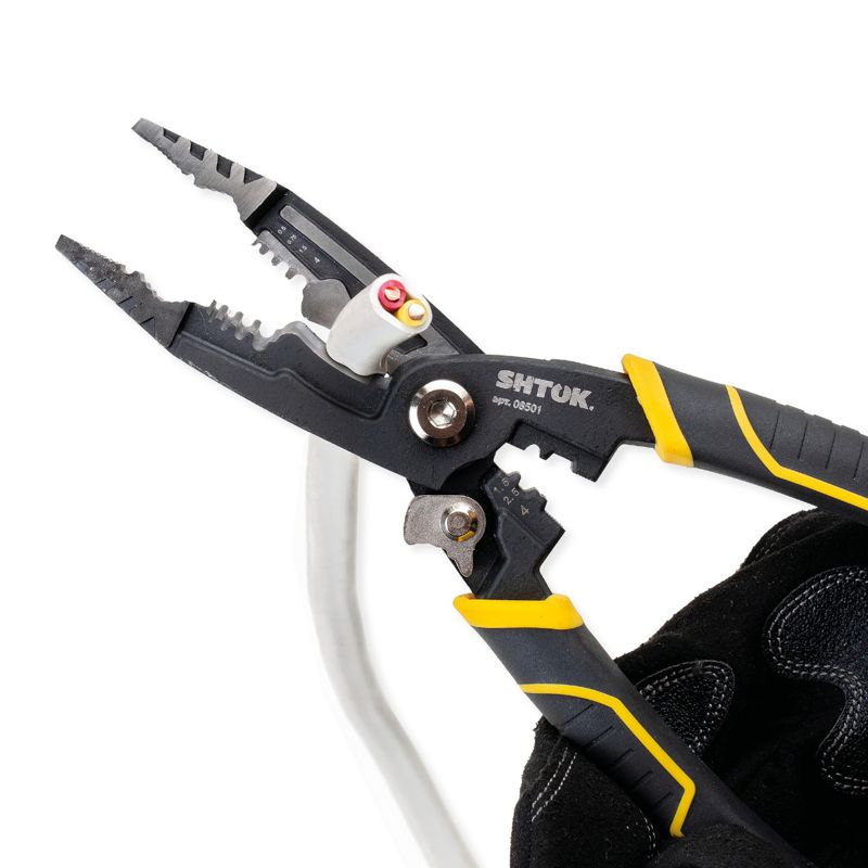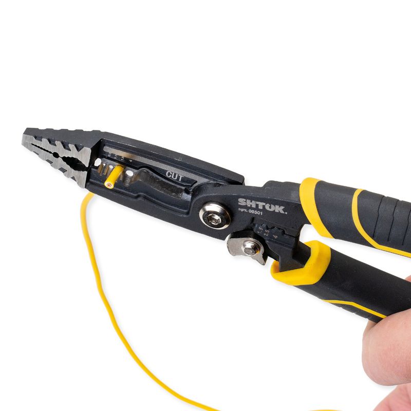 Клещи электромонтажные многофункциональные 6-в-1 предназначены для снятия изоляции.