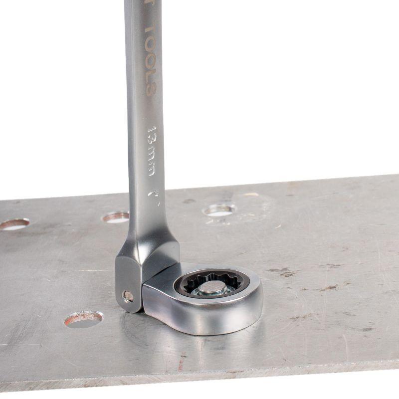 • Трещоточный механизм накидной части ключа, позволяет комфортно работать в местах с ограниченным пространством