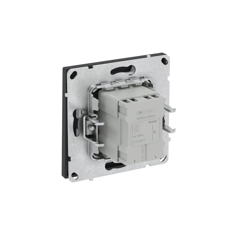 Одноклавишная кнопка применяется для кратковременного включения источника питания. Предназначена для скрытого монтажа в стену. Характеристики устройства: номинальное напряжение 250 В, номинальный ток 10 А. Материал: металл, поликарбонат. Пластиковые элементы имеют цвет "Черный уголь". Для декоративного оформления электроустановочных изделий используются рамки серии "KANT".