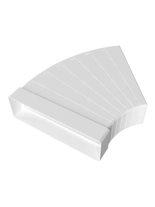 Колено плоское 55х110мм горизонтальное 511КРП изготовлено из пластика, который не меняет цвет и не подвержен старению. Материал обладает такими качествами как ударопрочность, стойкость к агрессивным щелочным и кислотным средам, атмосферным явлениям и относится трудновоспламеняемым материалам. Изделие выдерживает частые перепады температуры, контакт с жаром, влагой - этого достаточно, чтобы установить ее на кухне или в ванной комнате, где присутствуют данные факторы. Колено пластиковое Era 511КРП представляет из себя ничто иное, как фасонный элемент воздуховода плоской формы, обеспечивающий всевозможные перемены в направлении потока воздушных масс. Для соединения воздуховодов соответствующего сечения под углом от 3° до 48°.