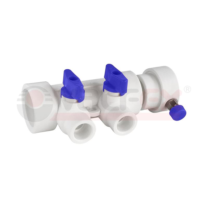 Коллектор PPR с отсечными син. кранами и воздух-ком 40х20 8 выходов (15/1) бел. K VALFEX 111134008