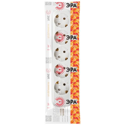 Колодка ЭРА KX-5e на 5 розеток с заземлением белая. Максимальная мощность - 16 А/3500 Вт. Для кабеля до 3х1,5мм2
