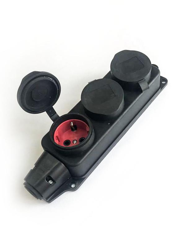 Колодка удлинителя 3-м 16А IP44 с заземл. каучук черн. КОСМОС KKsm-3g-Z-IP(B)16A