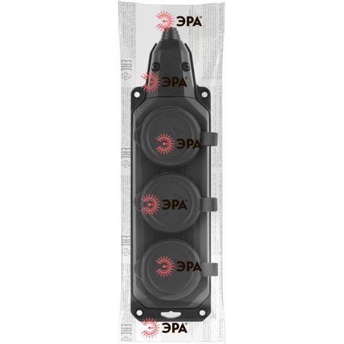 Колодка удлинителя 3-м с заземл. 16А IP44 K-3e-B-IP44 каучук черн. Эра Б0044545