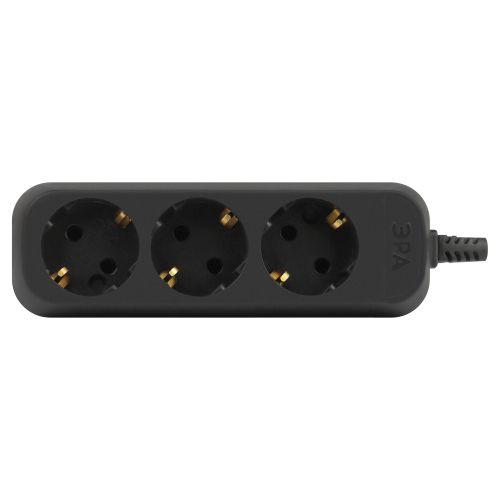 Колодка ЭРА KX-3e-B на 3 розетки, с заземлением, черная. Максимальная мощность - 16 А/3500 Вт. Для кабеля до 3х1,5мм2