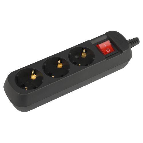 Колодка удлинителя 3-м с заземл. с выключателем черн. KX-3es-B Эра Б0061723