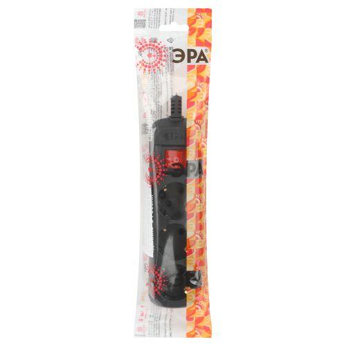 Колодка ЭРА KX-3es-B на 3 розетки, с заземлением, с выключателем, черная. Максимальная мощность - 16 А/3500 Вт. Для кабеля до 3х1,5мм2