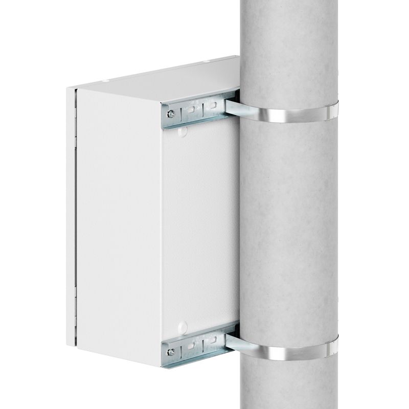 Комплект для крепления корпусов ST, STX, STE, STEX, STH, RAM box шириной 600 мм на опору. Крепежные профили изготавливаются из оцинкованной стали толщиной 2 мм, стяжные хомуты – из нержавеющей стали AISI 304. Максимальная статическая нагрузка на 2 профиля – 300 кг, подходят для круглых опор диаметром 40...195 мм или квадратных опор со стороной 60...165 мм. В комплект поставки входят: 2 профиля, 2 стяжных хомута, 2 замка для фиксации хомутов.
