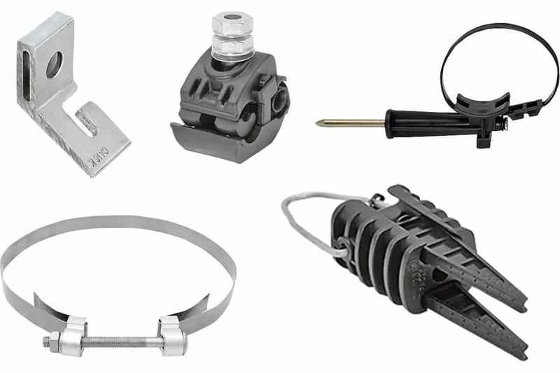 3 фазный комплект абонентского подключения НИЛЕД 14200411 для трехфазного ввода электричества в дом проводом 4х16 мм2. Комплект состоит из изделия для опоры и фасада: абонентские кронштейны, крепежный хомут, зажимы для проводов ввода, фасадное крепление, ответвительные зажимы.