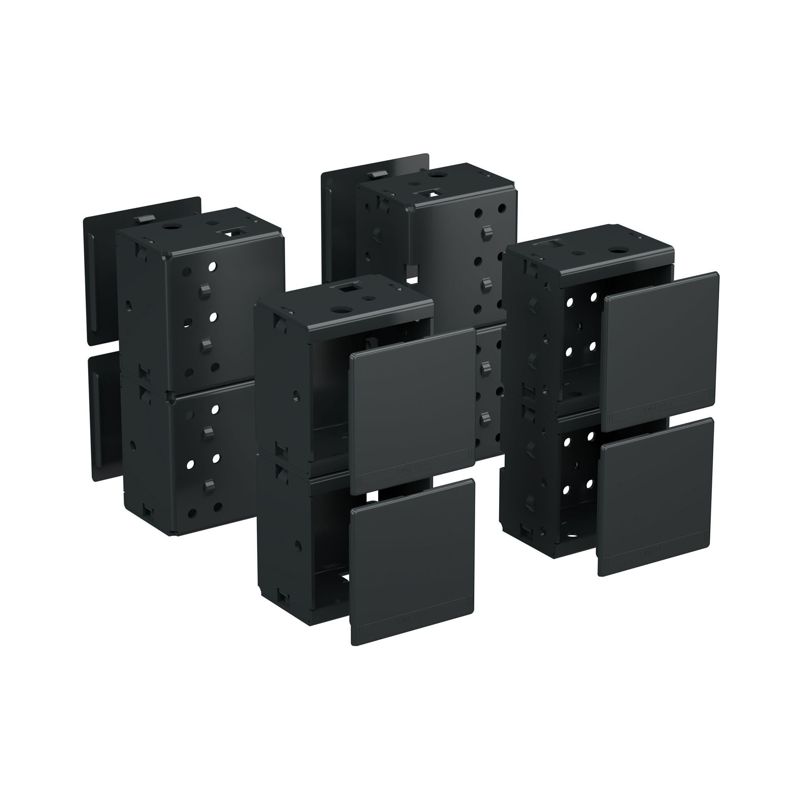 Цоколь к корпусу заказывается отдельным кодом. Он состоит из фланцев и угловых элементов. Фланцы универсальны - они могут устанавливаться как по ширине, так и по глубине шкафа. Цельносварные угловые элементы изготавливаются из оцинкованной стали толщиной 2,5 мм. Цоколь имеет порошковое покрытие RAL9005. Высота: 200 мм
