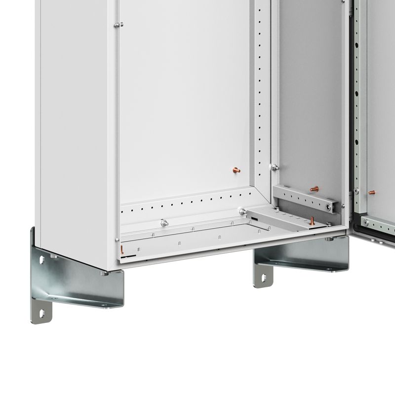 Консоли предназначены для настенного крепления корпуса. Максимальная статическая нагрузка составляет 400 кг, при этом сохраняется степень пыле- и влагозащиты IP55. При навесной установке с помощью кронштейнов и консолей сохраняется степень пыле- и влагозащиты IP55. Применяются совместно с консолями. Анкерные болты для крепления к стене приобретаются отдельно. Габариты Г = 400 мм.