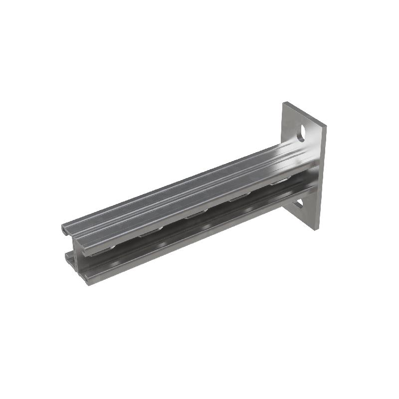 Элемент разработан для формирования опорных конструкций и узлов креплений на основе страт-профиля. Развёрнутая страт-консоль двойная усиленная применяется для фиксации кабельной трассы к вертикальным поверхностям, а также для создания опорных конструкций. Крепление изделия производится к стене, в профили и к стойкам при помощи крепёжных элементов. Представляет собой цельное изделие, готовое к использованию и не требующее предварительной сборки. Устанавливается без применения сварки. Изделие выполнено из стали оцинкованной электрохимическим способом. Предназначено для применения в местах предпочтительно с сухим климатом, внутри помещений и в слабоагрессивных средах, в соответствии с ГОСТ 15150-69.