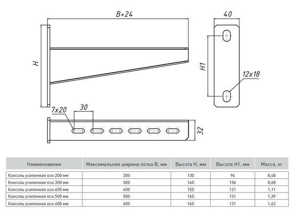 Консоль усиленная осн.300 2.5мм сталь HDZ гор. оцинк. EKF ky300