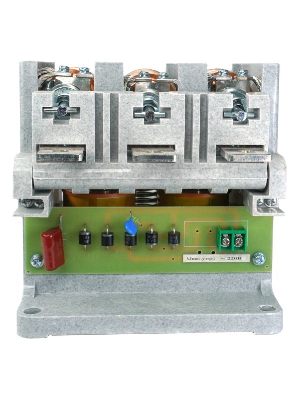 Контакторы вакуумные серии КВТ открытого исполнения с естественны воздушным охлаждением, встраиваемые в комплектные устройства, предназначены для использования в пускателях, станциях управления, для коммутации токов включения и отключения асинхронных электродвигателей с короткозамкнутым ротором и других приёмников электроэнергии в системах дистанционного управления электроприводами с тяжёлым режимом работы в цепи переменного тока 50-60 Гц, напряжением до 1140 В. Благодаря высокой электрической прочности вакуумного промежутка и отсутствию среды, поддерживающей горение дуги, электрическая дуга распадается и гаснет. * Высокий коммутационный и энергетический ресурс; * Высокая кратковременная нагрузочная способность для тяжелых пусков; * Отсутствие открытой электрической дуги и продуктов горения, * Высокое быстродействие; * Максимальная пожаро- и взрывобезопасность; * Низкий уровень шумов во время эксплуатации.