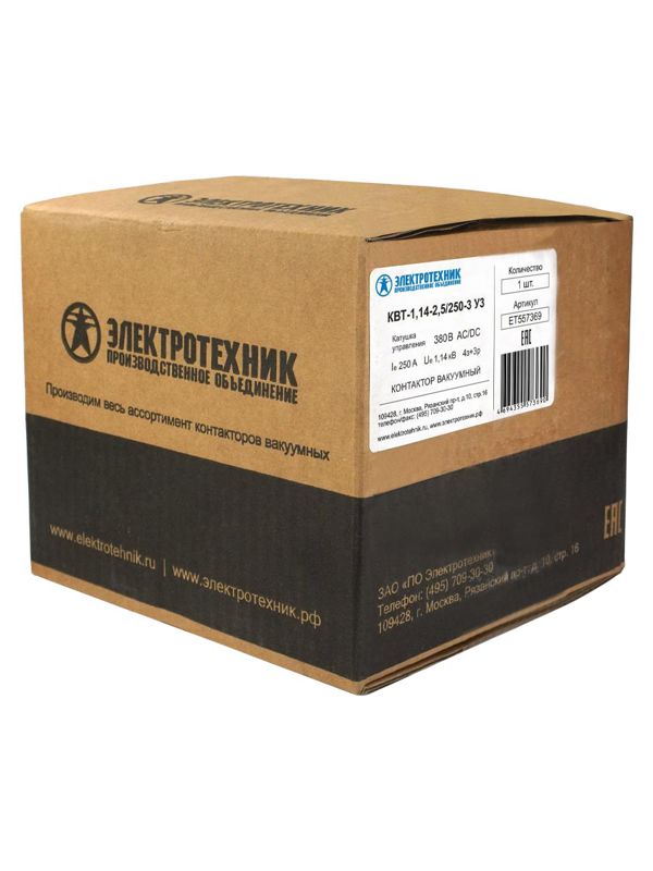 Контактор вакуумный КВТ-1.14-2.5/250-3 У3 3п 250А кат. 380В 4НО+3НЗ IP00 без реле Электротехник ET557369