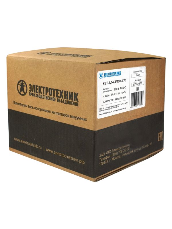 Контактор вакуумный КВТ-1.14-4/400-3 У3 3п 400А кат. 220В 4НО+3НЗ IP00 без реле Электротехник ET557370
