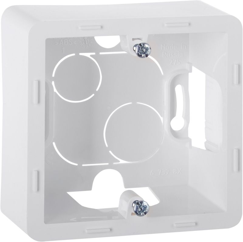 Коробка для накладного монтажа Inspiria, 1 пост, цвет "Белый". Коробка предназначена для накладного монтажа механизмов серии Inspiria и позволяет установить 1 механизм из данной коллекции. Конструкция коробки позволяет подключить провода наиболее удобным способом.