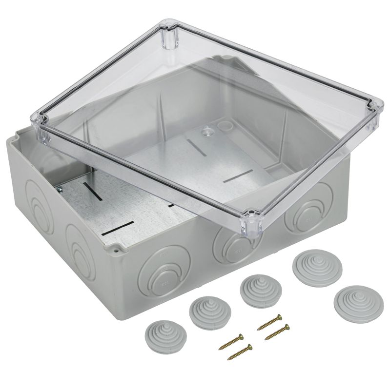 Монтажные коробки для открытого монтажа предназначены для разветвления проводов и кабелей, также для скрытия и дополнительной защиты мест коммутации. Коробки для открытого монтажа используются как часть системы электрической канализации, состоящей из жестких и гофрированных труб. Некоторые типы коробок (степень защиты IP44, IP55, IP65) могут быть использованы на открытом воздухе, а также во влажных и пыльных помещениях. Материал изготовления: полистирол. Материал коробок является безгалогенным («HF» — halogen-free). Цвет: серый. Степень защиты: IP55. Температура эксплуатации: -25...+40. Количество вводов - 5: 3 - D=25мм, 2 - D=32мм. Монтажная плата в комплекте. Размер: 240х195х90мм.