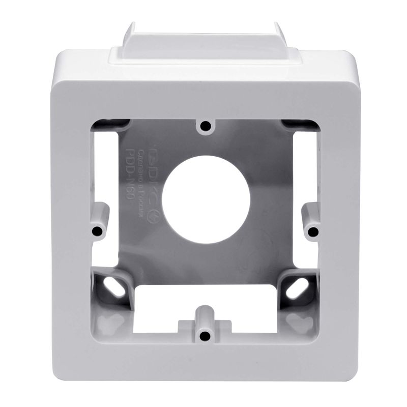Коробка монтажная под 2 модуля электроизделий, тип PDD-N60. Назначение: организация рабочего места. Условия монтажа электроустановочных изделий: с каркасами и рамками (аналогично как в стены), посадочный размер между винтами 60 мм. Характеристики: материал – АБС-пластик; отверстия 50х20 мм с 3-х сторон для ввода