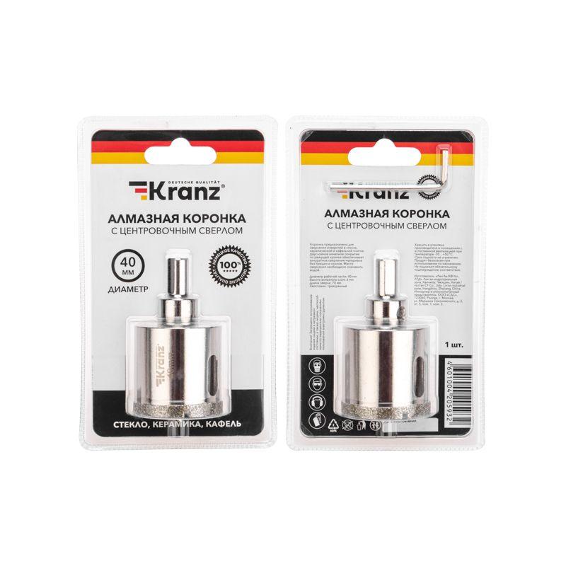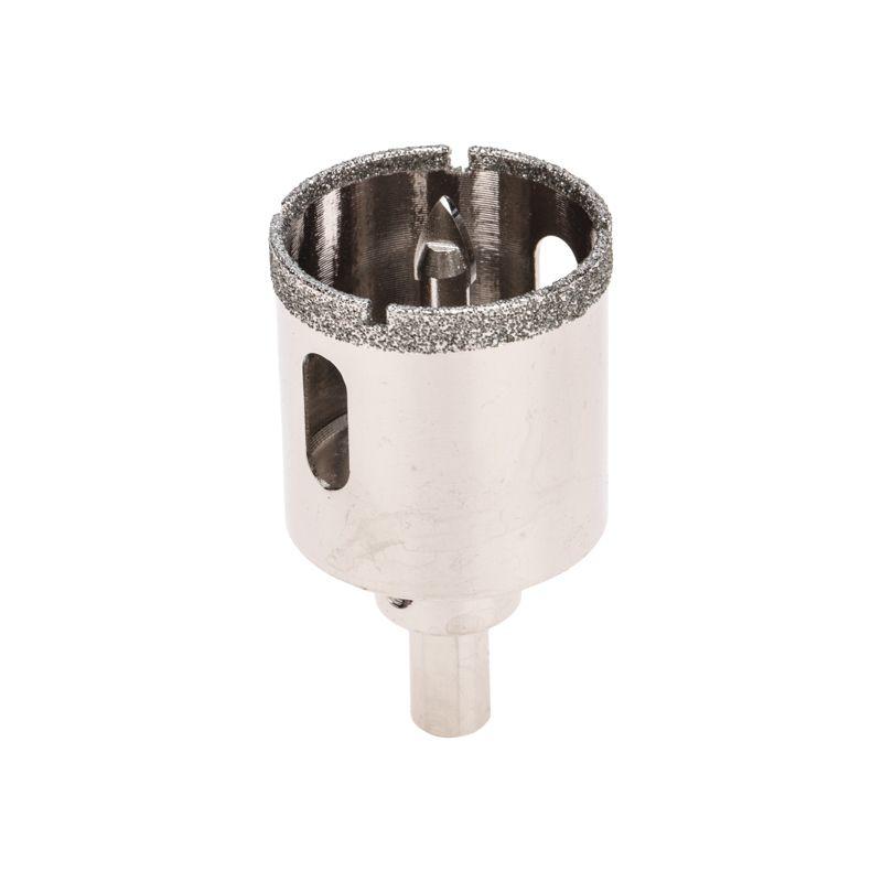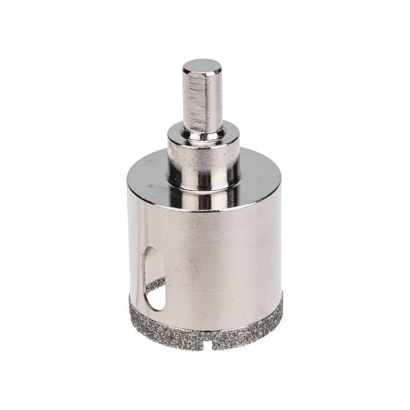 Алмазная коронка диаметром 40 мм используется при сверлении керамогранита, керамики, стекла. Наличие центровочного сверла обеспечивает точное позиционирование коронки на поверхности и помогает избежать смещения во время работ.