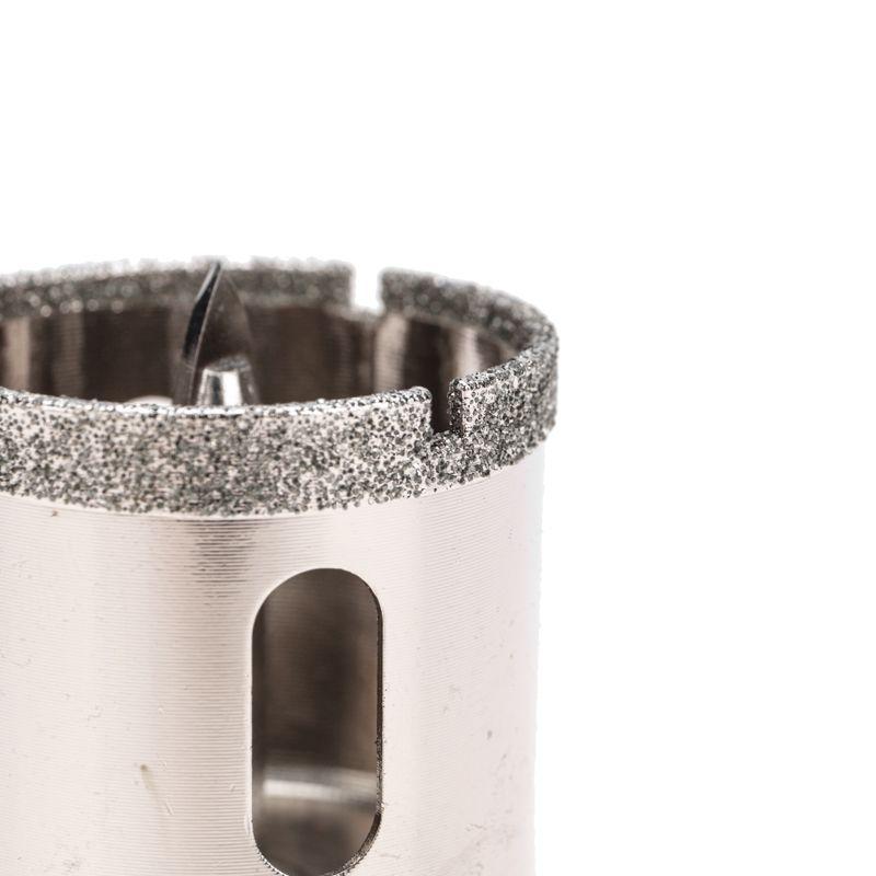 Покрытие алмазной коронки выполнено гальваническим способом в два слоя, что обеспечивает эффективное сверление и продолжительный рабочий ресурс инструмента. Равномерное распределение алмазов по режущей кромке гарантирует аккуратное сверление материала без трещин и сколов.