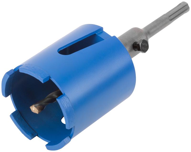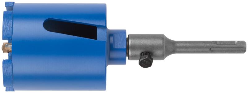 Коронка кольцевая алмазная MOS с центрирующим сверлом и хвостовиком SDS-plus предназначена для безударного сверления отверстий под монтажные коробки в бетоне (в том числе армированном) и кирпиче. Требуется водяное охлаждение. Резцы коронки изготовлены из композитного карбид-вольфрамового сплава ВК6, выдерживающего высокие ударные нагрузки. Алмазная заточка зубьев обеспечивает высокую скорость выполнения работ. Центрирующее сверло позволяет точно позиционировать коронку перед началом сверления и предотвращает ее смещение во время работы.
