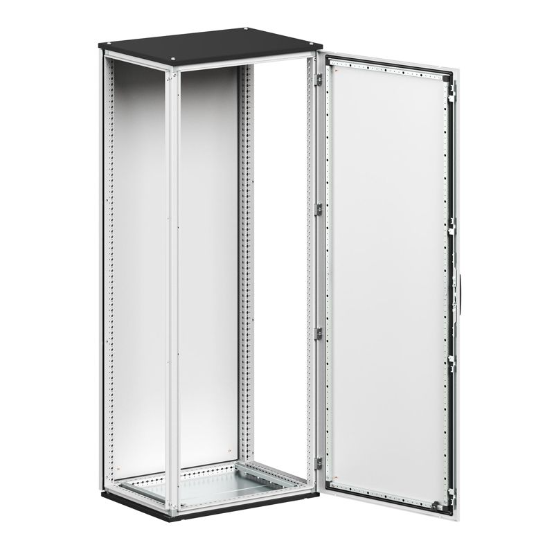 Собранные напольные корпуса CQE N предназначены для построения систем автоматизации, управления, распределения энергии. Заводская сборка сокращает время монтажа, а контролируемый процесс производства обеспечивает повышенную надежность конструкции. Изготовлены из листовой стали 1,5 мм с порошковым покрытием. Угол открытия двери — 130°. Ребра жесткости обеспечивают несущую способность до 1000 кг. Степень защиты при использовании стандартных боковых панелей – IP55, при замене стандартного кабельного ввода на сплошное дно — IP65. В комплект поставки входят полностью собранный каркас с задней панелью и одностворчатой сплошной дверью, стойки, крыша и основание с донными пластинами, дверная накладка с личинкой под ключ с двойной бородкой и ключ. Размер (ВхШхГ), мм: 2000х600х600.