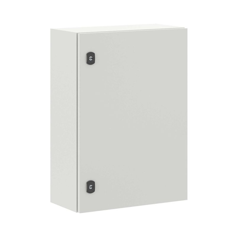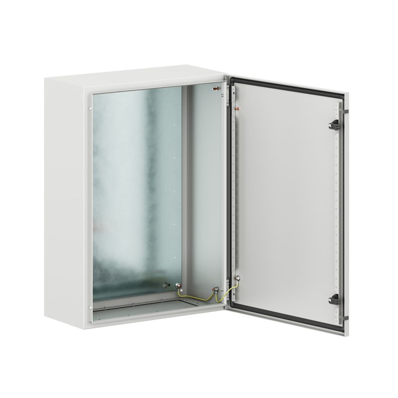 Навесные корпуса STE предназначены для систем автоматизации и распределения электроэнергии. Корпус, дверь, фланец STE изготавливаются из стали толщиной 1,5 мм с атмосферостойким порошковым покрытием, цвет RAL7035. Монтажная плата - из оцинкованной стали 1,8 мм. Корпуса выполнены по технологии сварки из единого листа металла, что обеспечивает высокую нагрузочную способность и защиту от вибраций. Степень защиты IP66, ударопрочность IK10, сейсмостойкость 9 баллов по шкале MSK-64, климатическое исполнение УХЛ1, ОМ2, ОМ3, группа горючести Г1. Комплект поставки: корпус, дверь реверсивная, монтажная плата, дверные рейки, поворотный замок 2 шт., сплошной фланец для ввода кабеля 1 шт., комплект заземления с проводами заземления. Габариты 700x500x250 (ШхВхГ) мм.