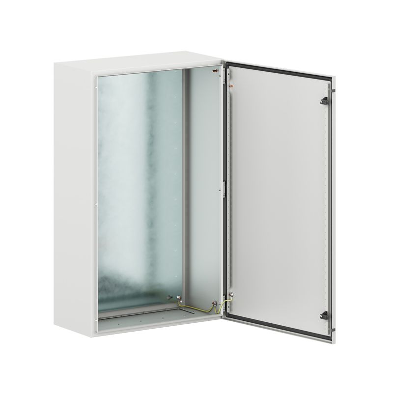 Навесные корпуса серии STE предназначены для систем автоматизации и распределения электроэнергии. Корпус, дверь, фланец серии STE изготавливаются из листовой стали толщиной 1,5 мм с атмосферостойким порошковым покрытием, цвет RAL7035. Монтажная плата изготовлена из оцинкованной стали толщиной 2,5 мм. Степень защиты IP66, ударопрочность IK10, сейсмостойкость 9 баллов по шкале MSK-64, климатическое исполнение УХЛ1, ОМ2, ОМ3, группа горючести Г1. Комплект поставки: корпус, дверь реверсивная, монтажная плата с двунаправленной разметкой, дверные рейки, поворотный замок 2 шт., сплошной фланец для ввода кабеля 1 шт., комплект заземления с проводами заземления. Габариты 1000x600x300 (ШхВхГ) мм.