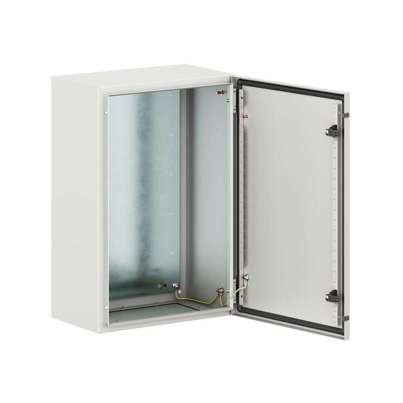 Навесные корпуса STE предназначены для систем автоматизации и распределения электроэнергии. Корпус, дверь, фланец STE изготавливаются из стали толщиной 1,5 мм с атмосферостойким порошковым покрытием, цвет RAL7035. Монтажная плата - из оцинкованной стали 1,8 мм. Корпуса выполнены по технологии сварки из единого листа металла, что обеспечивает высокую нагрузочную способность и защиту от вибраций. Степень защиты IP66, ударопрочность IK10, сейсмостойкость 9 баллов по шкале MSK-64, климатическое исполнение УХЛ1, ОМ2, ОМ3, группа горючести Г1. Комплект поставки: корпус, дверь реверсивная, монтажная плата, дверные рейки, поворотный замок 2 шт., сплошной фланец для ввода кабеля 1 шт., комплект заземления с проводами заземления. Габариты 600x400x250 (ШхВхГ) мм.