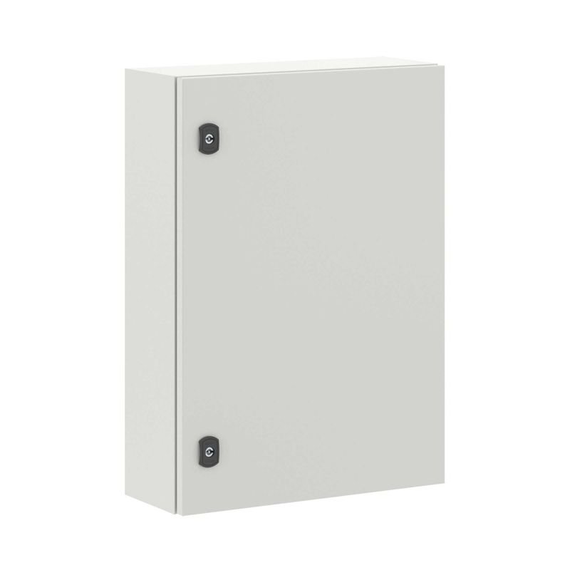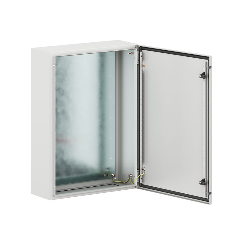 Навесные корпуса STE предназначены для систем автоматизации и распределения электроэнергии. Корпус, дверь, фланец STE изготавливаются из стали толщиной 1,5 мм с атмосферостойким порошковым покрытием, цвет RAL7035. Монтажная плата - из оцинкованной стали 1,8 мм. Корпуса выполнены по технологии сварки из единого листа металла, что обеспечивает высокую нагрузочную способность и защиту от вибраций. Степень защиты IP66, ударопрочность IK10, сейсмостойкость 9 баллов по шкале MSK-64, климатическое исполнение УХЛ1, ОМ2, ОМ3, группа горючести Г1. Комплект поставки: корпус, дверь реверсивная, монтажная плата, дверные рейки, поворотный замок 2 шт., сплошной фланец для ввода кабеля 1 шт., комплект заземления с проводами заземления. Габариты 700x500x200 (ШхВхГ) мм.