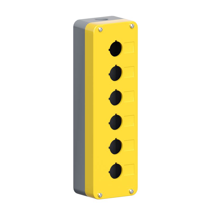 Корпус под кнопочный пост на шесть мест предоставляет возможность установки до шести кнопок или переключателей. Это решение отлично подходит для применения в больших установках, где требуется гибкость и расширенная функциональность. Прочные материалы корпуса гарантируют долговечность, а также надежно защищают компоненты от повреждений.