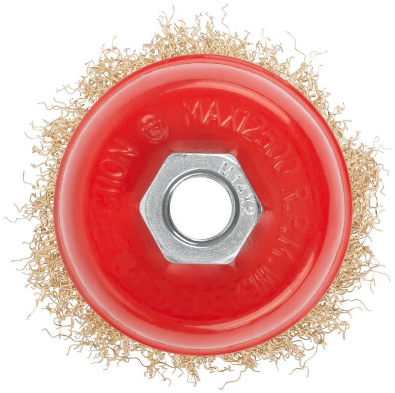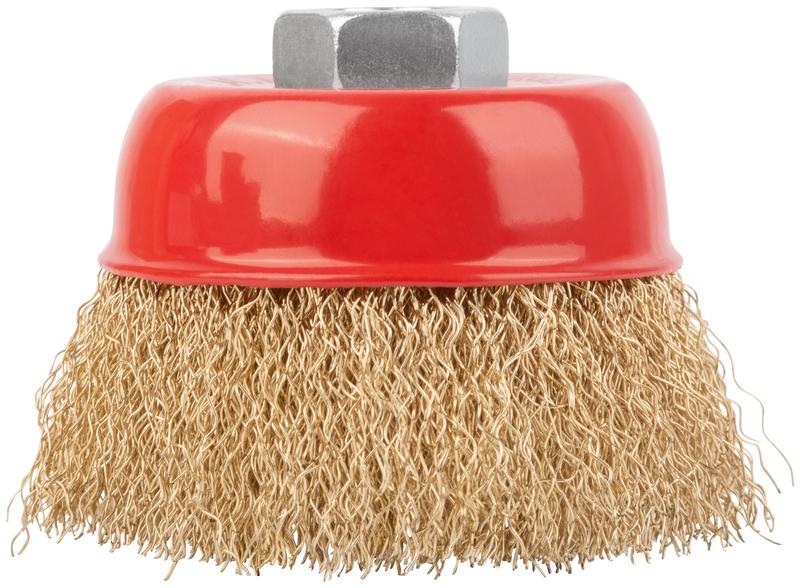 Корщетка-насадка для УШМ КУРС тип «чашка» предназначена для обработки дерева и металла, снятия краски. Форма «чашка» обеспечивает хорошую площадь прилегания к поверхности. Волнистая проволока обеспечивает деликатную зачистку поверхностей. Латунное покрытие проволоки предотвращает коррозию. Гайка с резьбой М14 обеспечивает прочную фиксацию на УШМ.