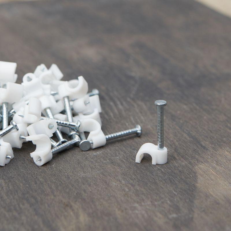 Круглый крепеж 3 мм с гвоздем предназначен для фиксации круглого кабеля к деревянной поверхности. Такой крепеж будет особенно полезен для использования на даче или в частном деревянном доме.