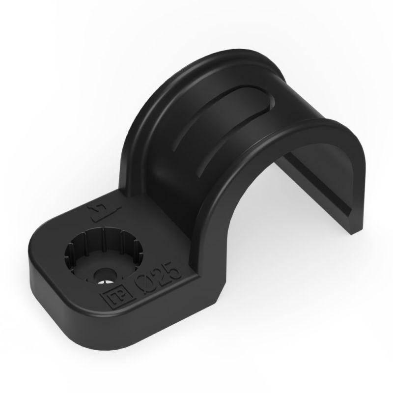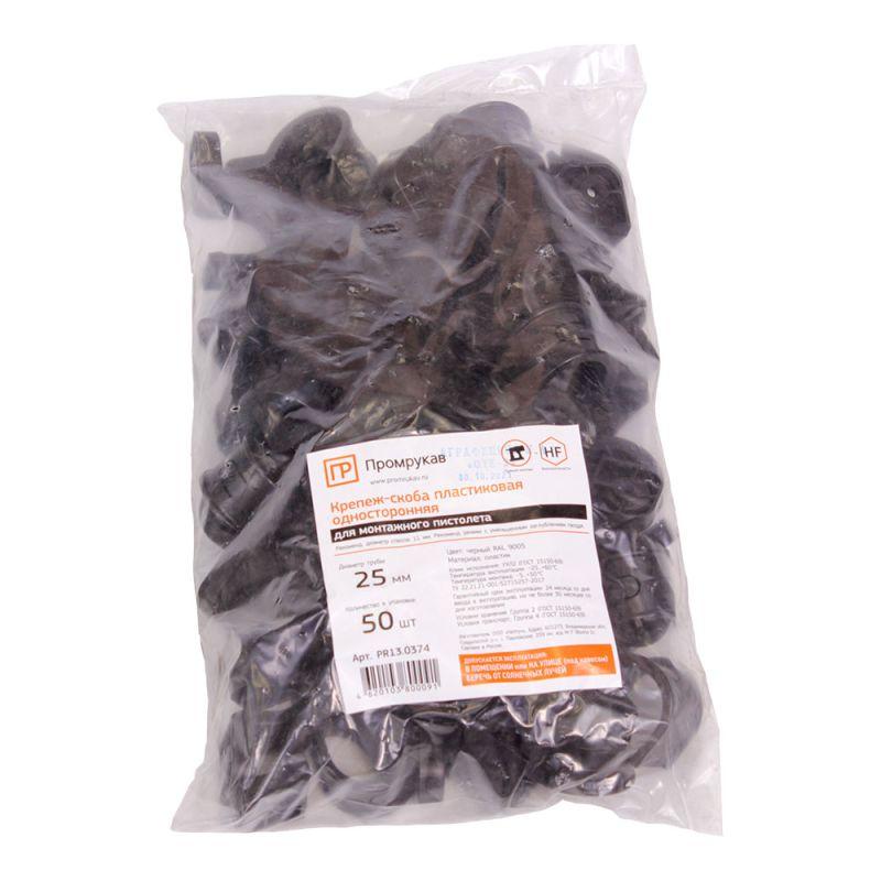 Крепеж-скоба односторонняя d25мм для прямого монтажа атмосф. пластик. черн. (уп.50шт) Промрукав PR13.0374