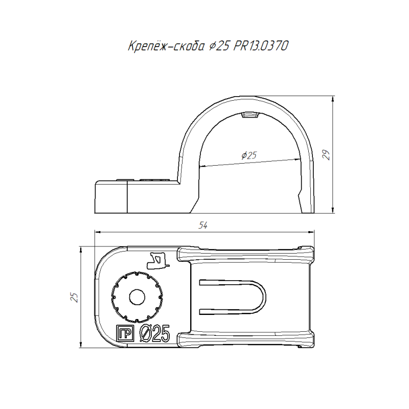 Крепеж-скоба односторонняя d25мм для прямого монтажа атмосф. пластик. в п/э сер. (уп.50шт) Промрукав PR13.0370