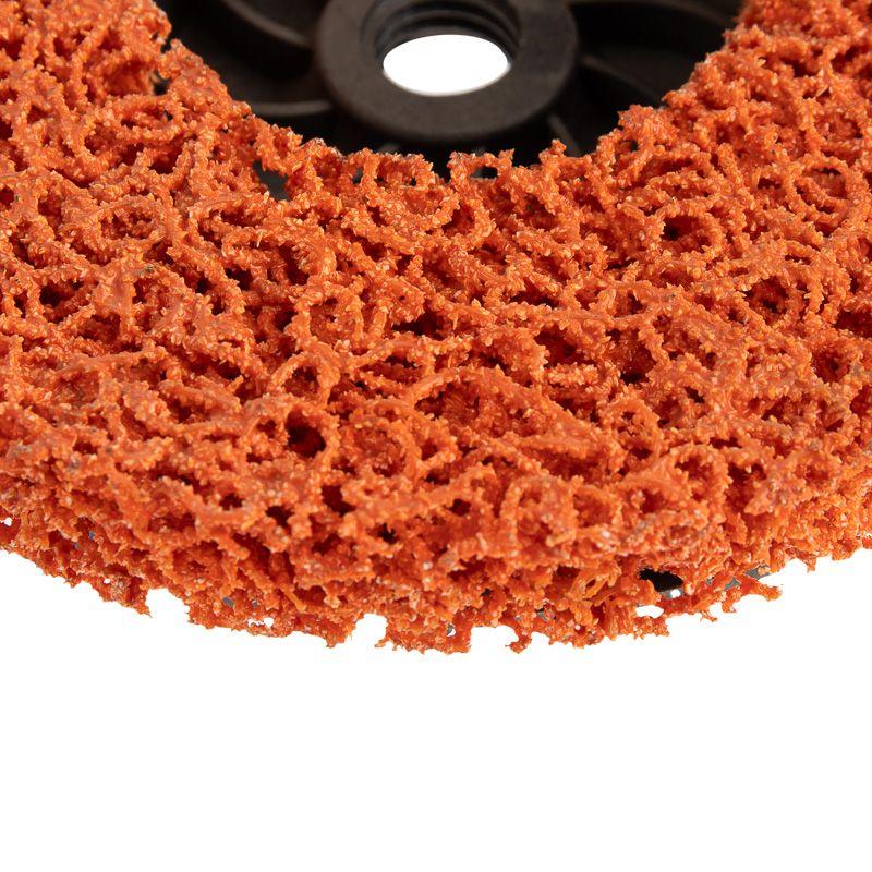 Зачистной коралловый полимерный круг предназначен для снятия ржавчины и краски с металлических и деревянных поверхностей. Эффективно удаляет загрязнения, прокатные окалины, эпоксидное покрытие и т.д. Круг является неотъемлемым инструментом для подготовки поверхности перед сваркой или перед нанесением нового покрытия.