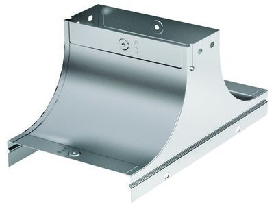 При построении кабельной трассы чаще всего требуется организовать ее изгибы и ответвления в горизонтальной и/или вертикальной плоскости. Для этого в системе "S5 Combitech" применяются аксессуары. Крышка-ответвитель TS используется, если нужно организовать сложное ответвление кабельной трассы. Она имеет Т-образную форму. При ответвлении обеспечивается плавный изгиб, что предохраняет кабель от повреждения. Ширина лотка в горизонтальном направлении – 400 мм, в вертикальном – 400 мм, высота боковой стенки – 100 мм.