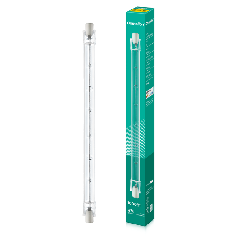 Лампа галогенная J189 1000Вт 220В R7 лин. 189мм Camelion 2938 – лампа сетевого напряжения без отражателя, трубчатая, с односторонним цоколем, с прозрачной колбой, длиной 189 мм, с цоколем R7s, мощностью 1000 Вт. Цветовая температура 2850 К.