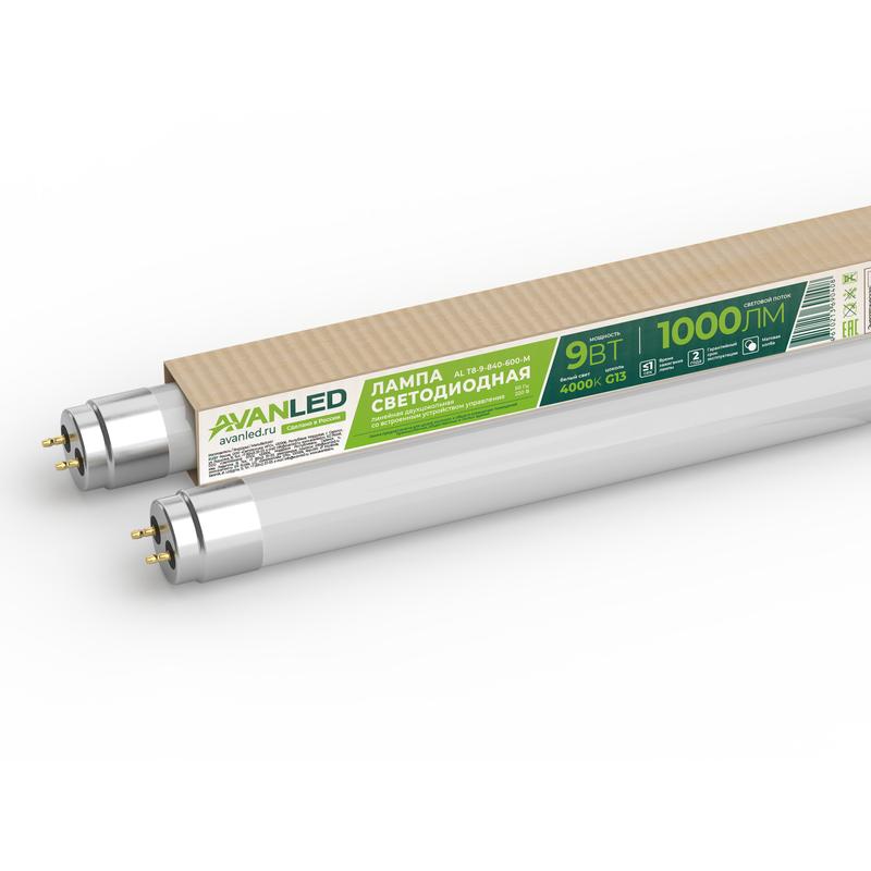 Лампа светодиодная AL T8-9-840-600-М 9Вт матовая 4000К нейтр. бел. G13 1000лм 195-265В (пр-во РФ) AVANLED 11106401