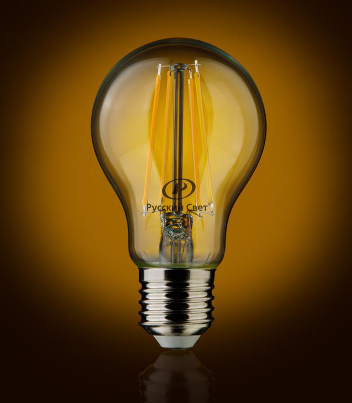 Лампа светодиодная филаментная RS F A55 E27 8W 220-240V 2700К 8Вт 970лм Ra 90 грушевидная Русский Свет 15010945086