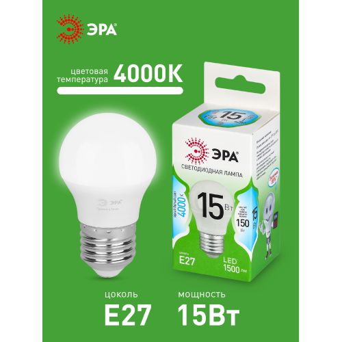 Светодиодная лампа ЭРА LED P45-15W-840-E27 GL серии Green Line — компактный и энергоэффективный источник света. Лампочка мощностью 15 Вт с цоколем E27 излучает нейтральный белый свет (4000K), создавая комфортное и равномерное освещение. Высота лампы: 90 мм. Форма P45 (шар) и небольшой размер делают её отличным выбором для настольных ламп, бра, торшеров и декоративных светильников. Отличается низким энергопотреблением, долгим сроком службы и устойчивостью к перепадам напряжения. Работает от сети 220 В, эквивалентна 150 Вт лампе накаливания. Обеспечивает стабильное свечение без мерцания, идеально подходит для дома, гостиниц, кафе и коммерческих помещений.